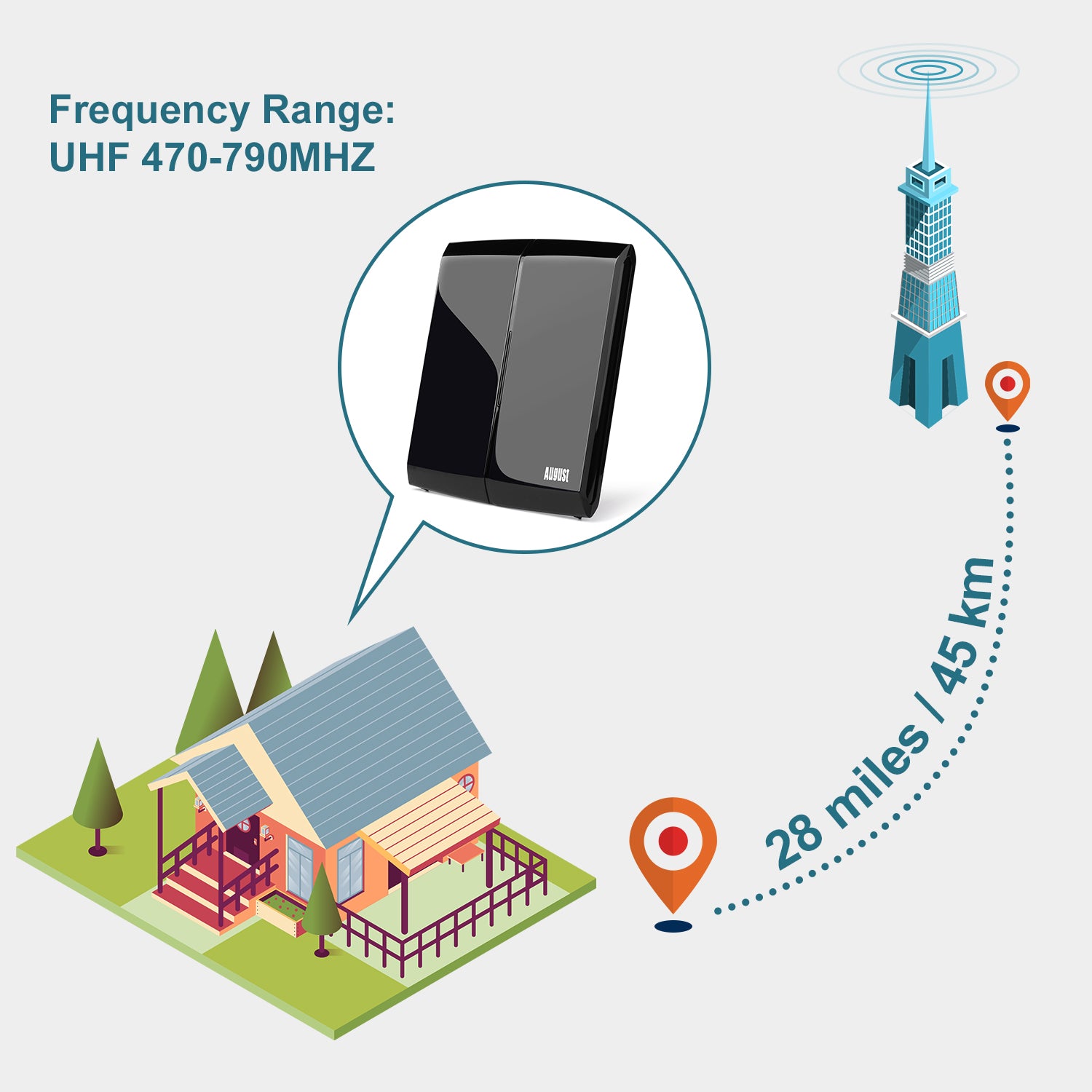 Dank seines schlanken, flachen Designs eignet es sich perfekt zum Platzieren auf Ihrem Fenstersims oder diskret hinter Ihrem Fernseher. Mit seinem internen Verstärker liefert es auch in Gebieten mit durchschnittlicher Signalstärke außergewöhnliche Ergebnisse.