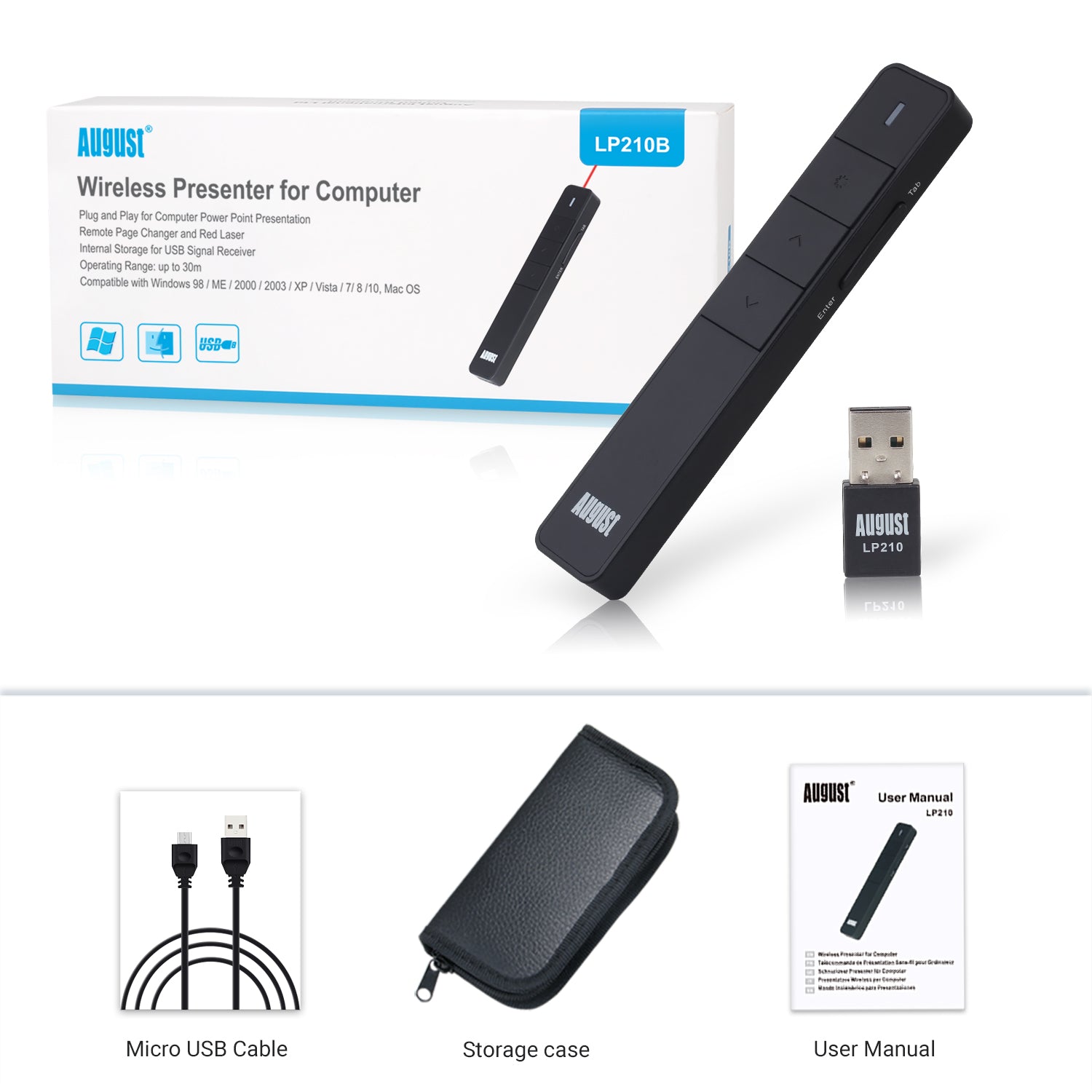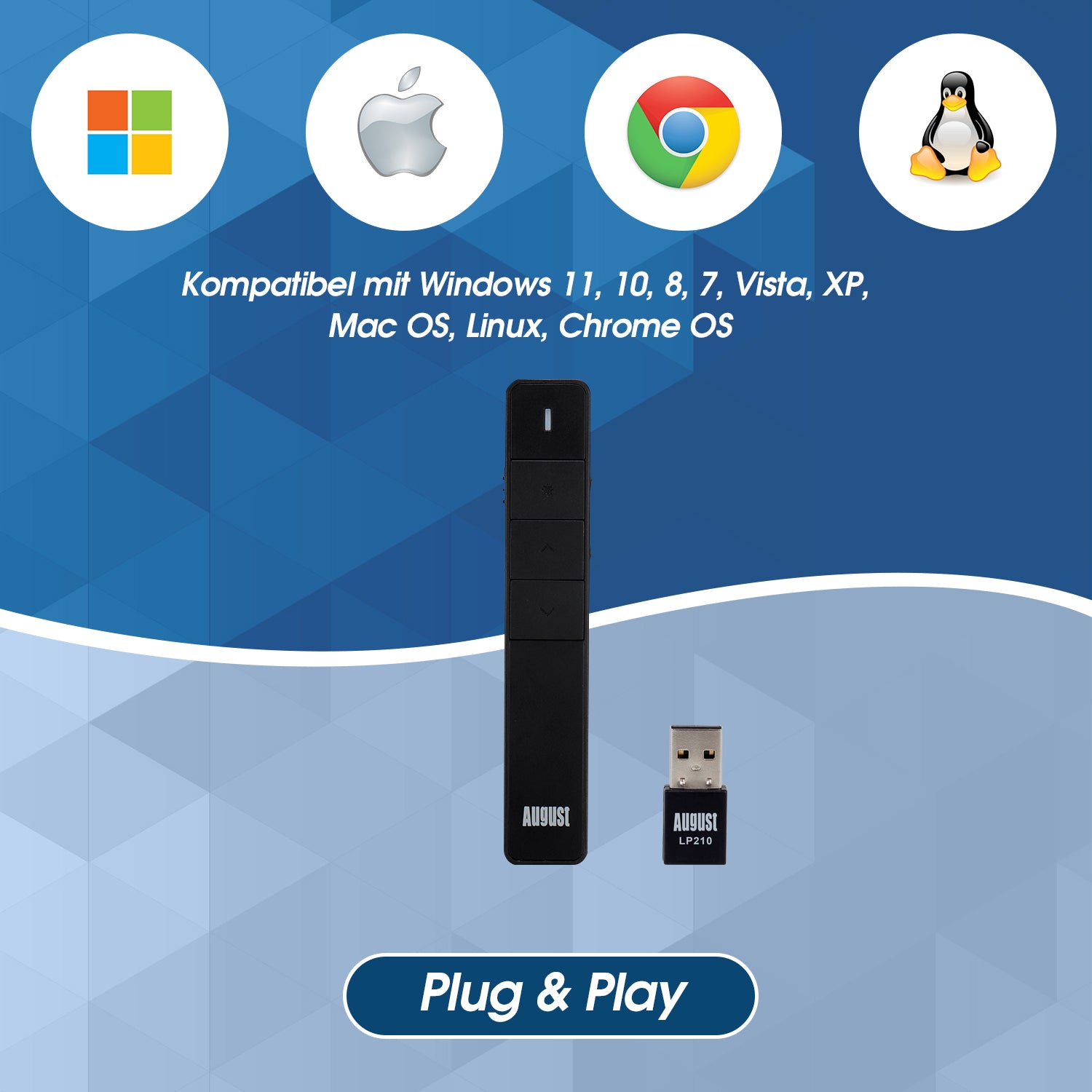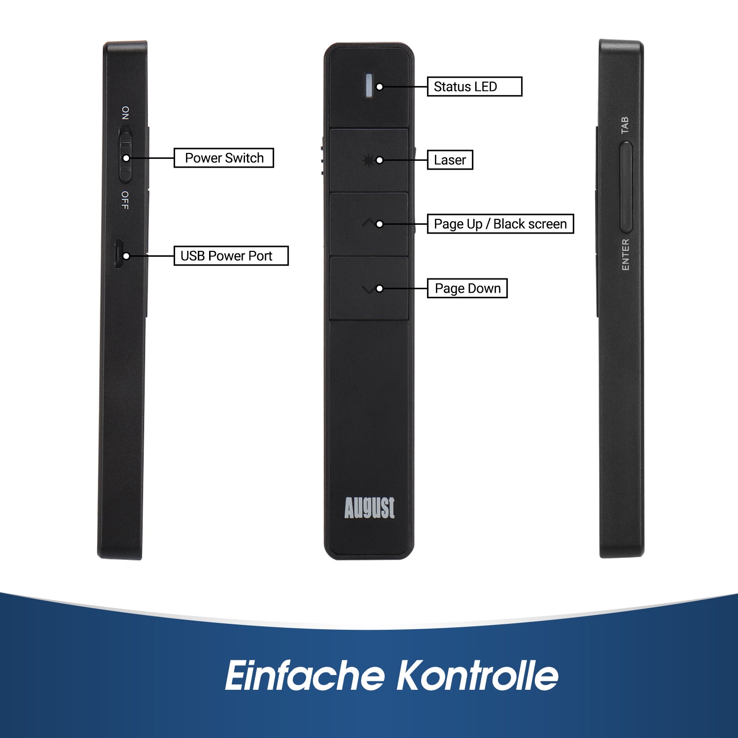 - August LP210 - Schnurloser Presenter mit Laserpointer und integriertem Akku