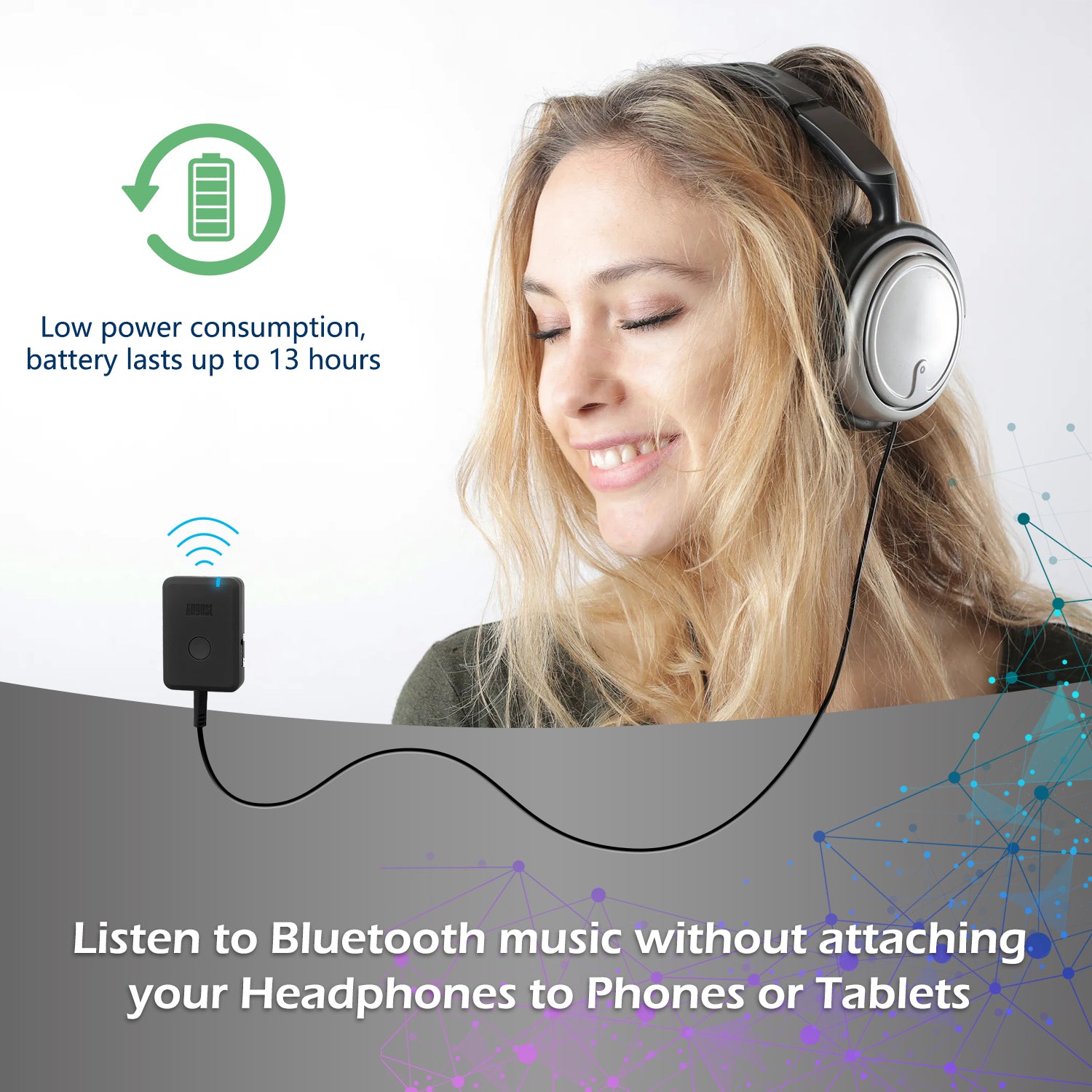 Dank der bemerkenswerten Akkueffizienz des MR230 genießen Sie bis zu 13 Stunden kontinuierliche Audioübertragung oder -empfang mit nur einer Ladung. Egal, ob Sie Ihr Autoradio mit Bluetooth-Konnektivität aufrüsten, Kopfhörer kabellos mit Ihrem Fernseher verbinden oder kabelgebundene Ohrhörer in moderne kabellose Ohrhörer verwandeln möchten, der MR230 bietet vielseitige Lösungen für Ihre Audio-Bedürfnisse und mehr.