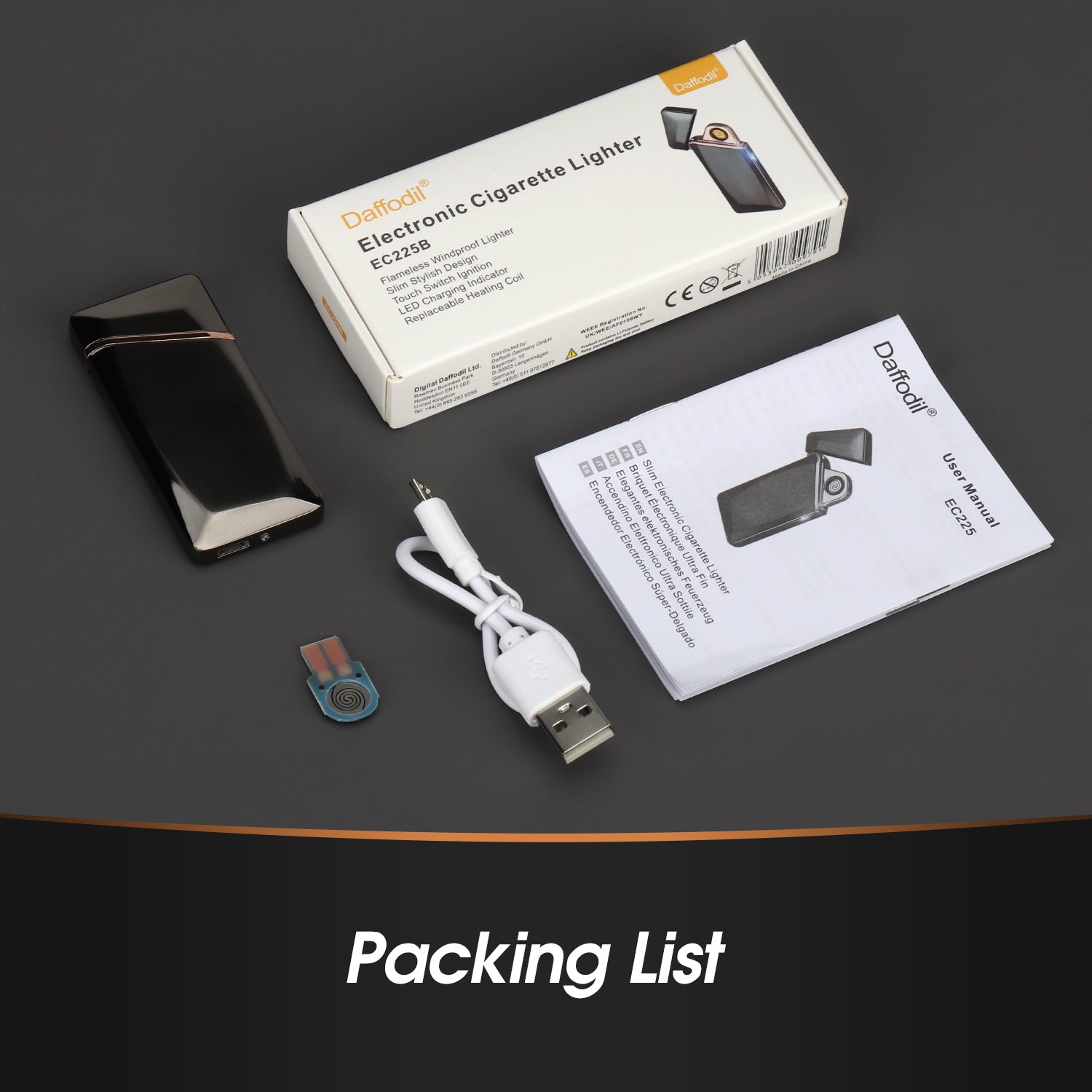 Das EC225 Feuerzeug bietet ein flammenloses und winddichtes Design, das auch unter schwierigen Outdoor-Bedingungen zuverlässig funktioniert. Öffnen Sie einfach den Deckel und berühren Sie den Sensor an der Seite, um die Spirale zu aktivieren, die sich sofort erhitzt und eine mühelose Zündung ermöglicht.