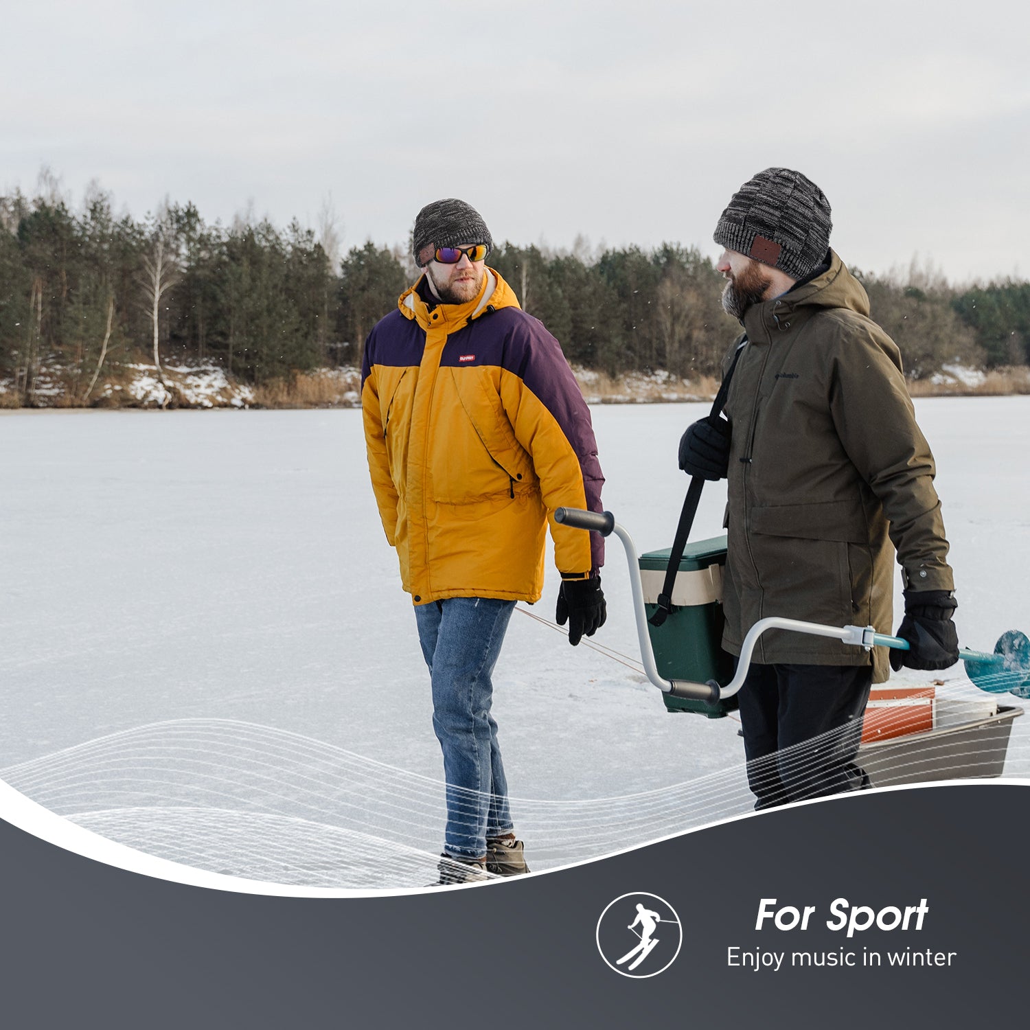 Auf der Skipiste, bei einer Schneeballschlacht oder einfach nur beim Spazierengehen - die Mütze bedeckt den Kopf gut, hält Sie warm und spielt Ihre Lieblingssongs von Ihrem Handy oder Tablet ab.
